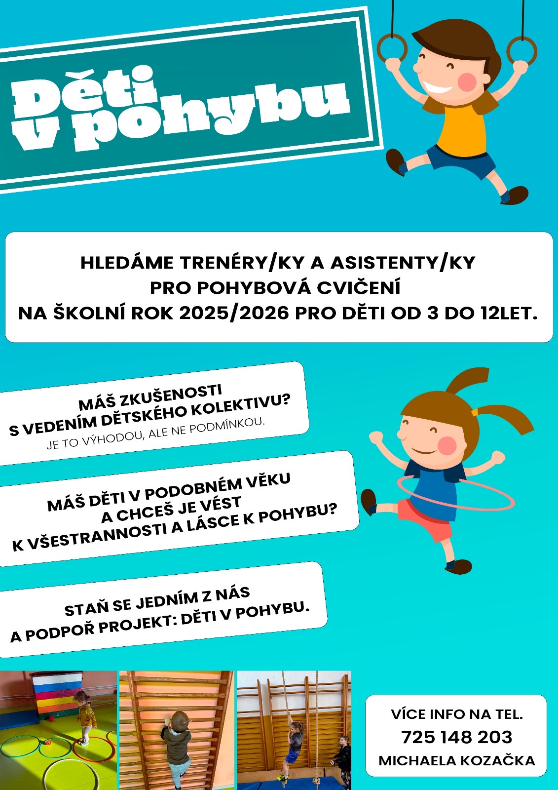 Hledají se trenéři a asistenti pro pohybová cvičení pro děti